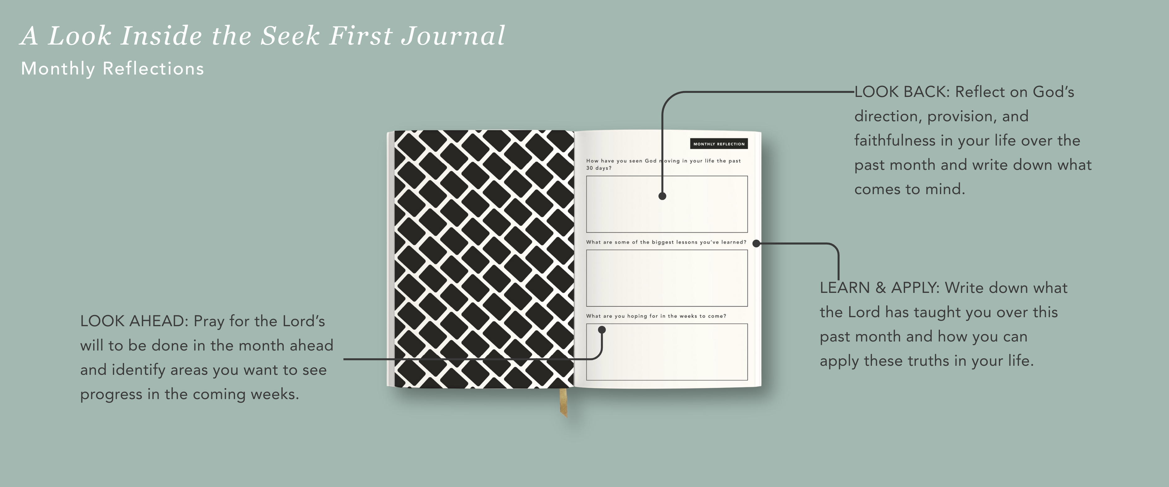 "The Seek First 3-Month Bible Journal is a beautifully designed and practical tool for deepening my time in God’s Word.
